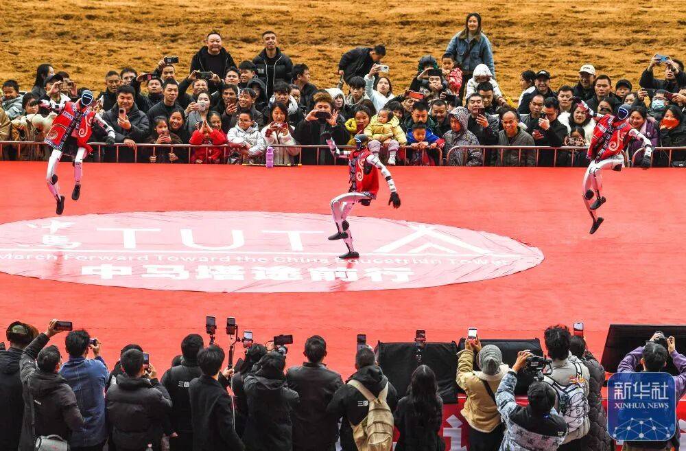 ↑机器人在贵州省三都水族自治县举行的“村马”比赛间隙表演节目。新华社记者 杨文斌 摄