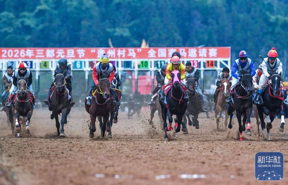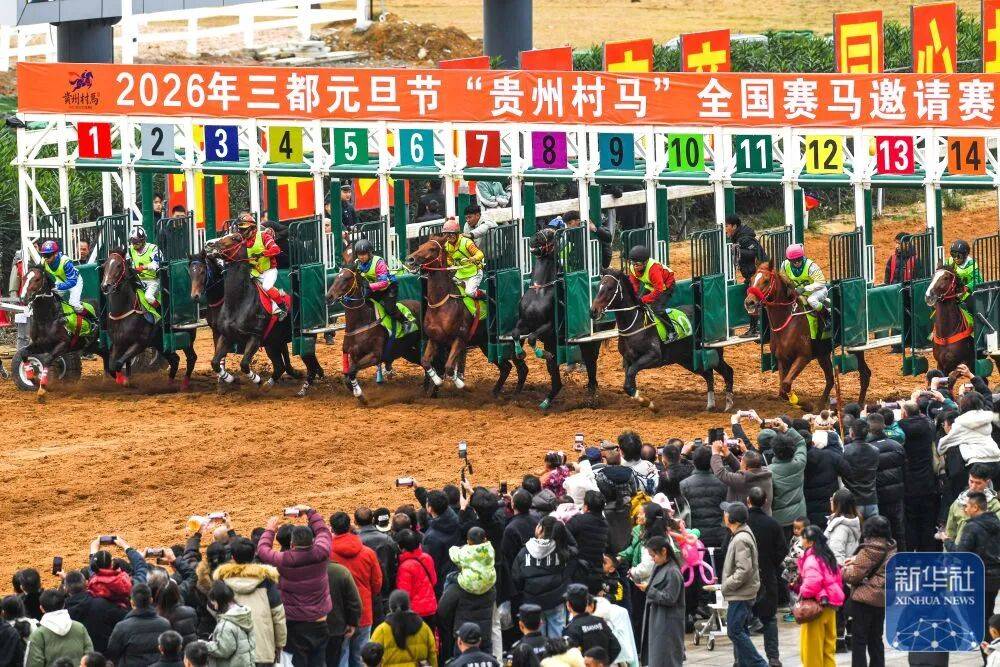 1月1日,2026年“贵州村马”全国赛马邀请赛在三都水族自治县举行,来自全国的多支代表队参加比赛。比赛期间举办马术表演、民俗展演等丰富多彩的活动,喜迎元旦节的到来。