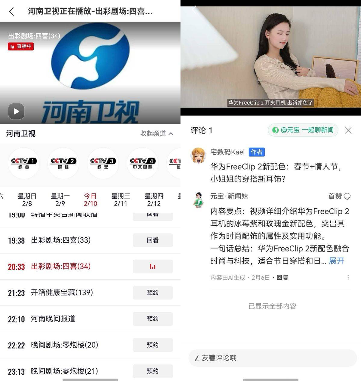过年期间体育赛事也不能缺席,用鸿蒙版腾讯新闻就能实时追踪冬奥赛事,每一个精彩瞬间都不落下。刷新闻累了,还能在评论区@“元宝”智能助手,让它帮你总结文章重点、聊天解闷,主打一个贴心又实用。