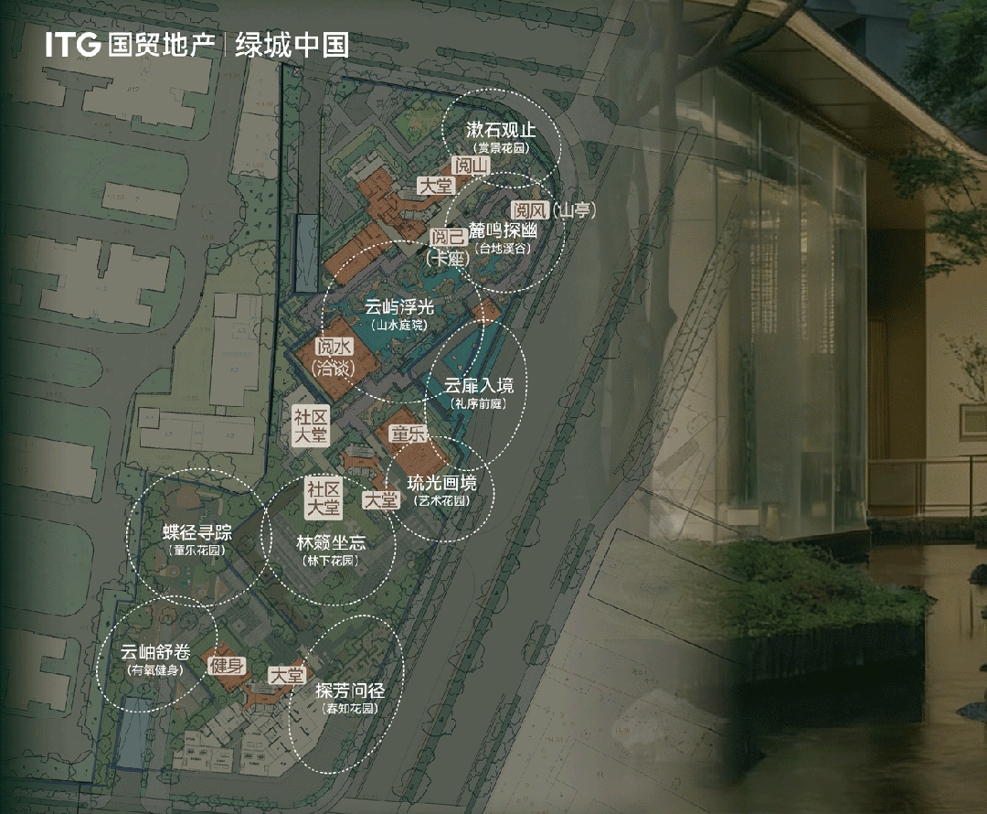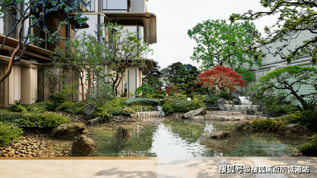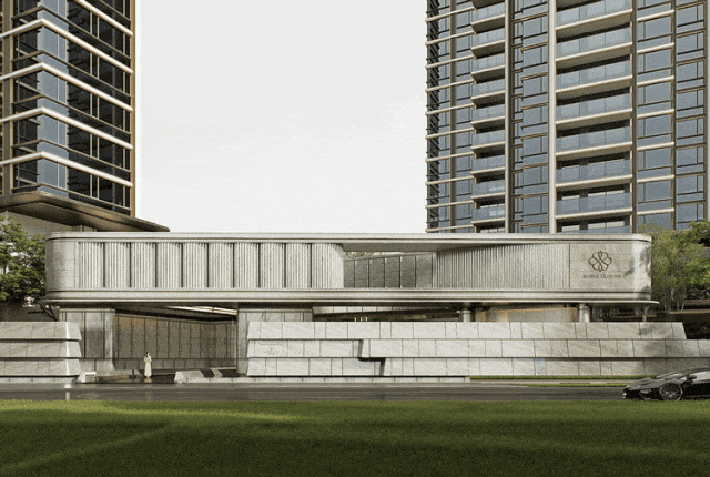 建筑是凝固的音乐,而园林则是流动的诗篇。国贸·绿城云樾和鸣深谙此道,将绿城的“鸣系”产品理念发挥得淋漓尽致。该项目是绿城“鸣系”首次落地广州,其核心定位便是根植城市文化厚土,萃取属地文化符号,打造文脉传承的尊享型产品。在广州,刻进DNA的在地元素无非是“云山”与“珠水”。项目直线公里,这种得天独厚的地理禀赋,使其在设计之初便确立了“云山叠翠”与“城市宏图”并重的基调。园林设计并非对传统岭南园林繁复符号的简单照搬,而是一场关于“云起樾鸣,青绿栖心”的现代重构。设计师萃取了东方造园智慧中“小中见大、曲径通幽”的精髓,将白云山的“云、林、泉、石”四种自然元素解构并重组成社区生活的背景,在城市的喧嚣中铺陈开一幅“湖上春来似画图”的生动长卷。