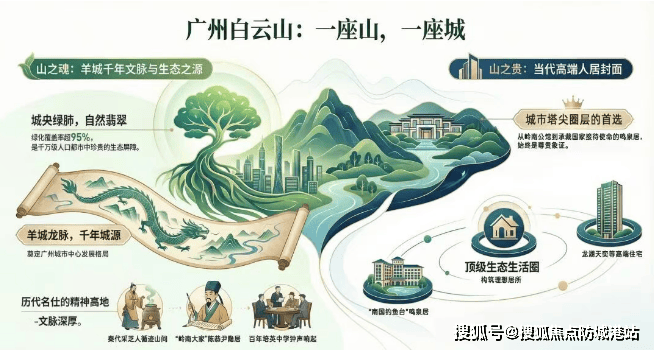 白云新城的价值,绝非一蹴而就,它与广州其他CBD最大的不同在于:它是有根的。这种根,深植于白云山的万年青翠与千年人文羁绊之中。从以前聚集着各路达官显贵的岭南公馆,再到肩负国家外事接待的鸣泉居,这片土地,一直都是城市顶尖圈层首选的聚居地。这片土地,自古便是“贵气”与“底蕴”的代名词。而白云新城更迷人的特质,更在于它大隐于市的定力:它一面与千年云山肌理相连,另一面,转身即是广州最具分量的国际会客厅。这种繁华与静谧的无缝切换,构成了它独一无二的气质。