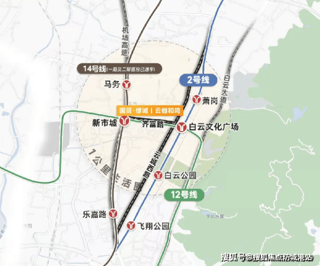 地处白云新城核心区,其交通网络的完善程度堪称典范。项目距离地铁2号线号线米。这三条地铁线路构成了项目的立体交通骨架,其中2号线贯穿广州南北,连接越秀、天河等核心城区;12号线作为东西向的大动脉,将有效串联白云、海珠等区域;而14号线二期则进一步拓展了通往知识城及外围区域的辐射能力。这种多线交汇的格局,意味着业主只需步行即可轻松抵达地铁站,快速通达全城,极大地提升了通勤效率与生活便利性。