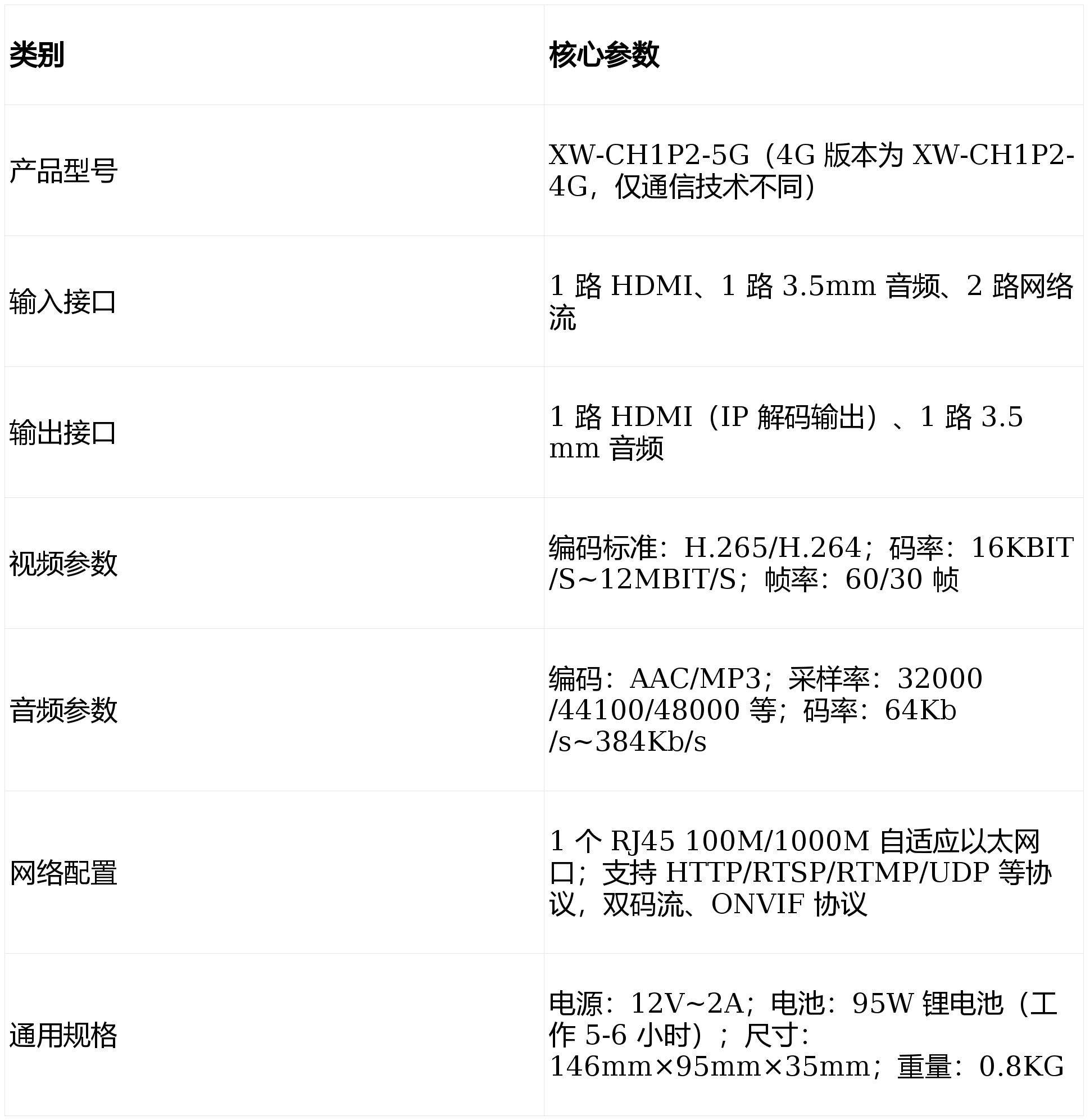 2026-01-12多宝体育,多宝体育官方网站,多宝体育APP下载在移动直播、远程传输、小型导播需求日益增长的当下,一款集高清采集、灵活导播、多网适配、长效续航于一体的编码器,成为提升直播效率与画质的核心装备。XW-CH1P2-5G 高清 HDMI 音视频简易导播直播编码器,凭借全面的功能配置、稳定的性能表现和便捷的操作体验,为各类音视频传输场景提供一站式解决方案,堪称移动直播与导播的 “全能搭档”。