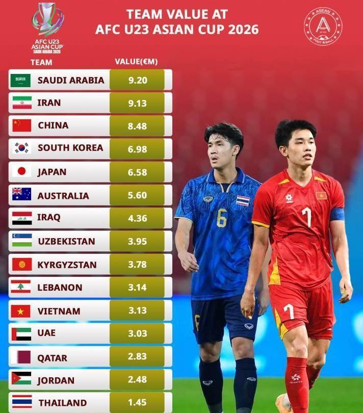 再看看我们这个小组,被媒体称为“死亡之组”不是没道理的。光看身价,我们D组四队加起来总身价超过2100万欧元,是所有小组里第二高的,仅次于有韩国、伊朗、乌兹别克斯坦的C组。组里除了泰国队身价低点,伊拉克和澳大利亚都不白给。特别是澳大利亚,预选赛咱们在主场跟他们踢过,当时控球率才26%,完全被压着打,最后是硬靠防守0比0守了个平局。那场比赛咱们首发的11个人,身价加起来460万欧元,比澳大利亚的首发还高一点呢。可场面上,真没占到什么便宜。