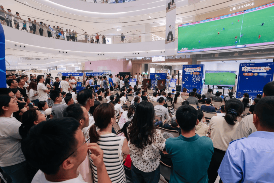 当天傍晚,龙湖相城天街的活动现场氛围热烈。巨大的高清屏幕前早早坐满了球迷与市民家庭。比赛中每一次精彩的传球、射门与扑救,都引来阵阵欢呼与掌声。活动现场不仅提供了优质的观赛环境,还精心设置了体彩互动体验区、趣味游戏、有奖竞猜等环节,将体育观赏、公益体彩与休闲娱乐深度融合。