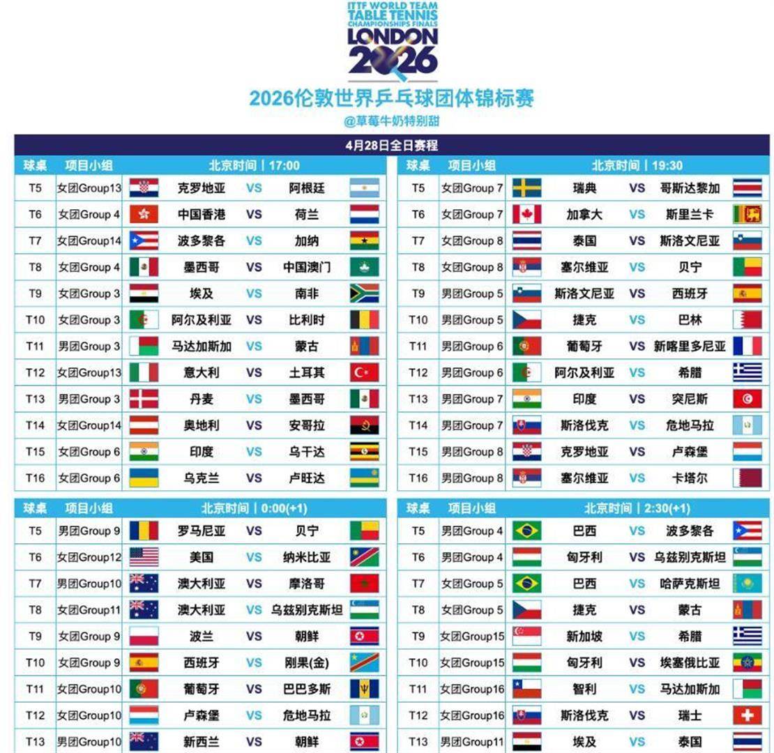 本次世乒赛团体赛的转播信号将覆盖全球。 多家国际体育媒体和转播机构都会对关键场次进行直播,确保世界各地的球迷能够收看到这场乒乓盛宴。 对于卫冕冠军的球迷来说,从5月2日开始,就需要调整好作息,准备迎接从下午到凌晨的连续观赛挑战。