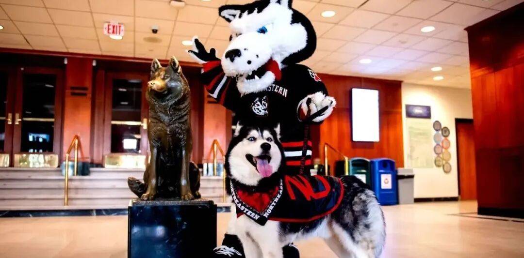 学校体育代表队的队名为“Northeastern Huskies”,吉祥物是一支可爱的哈士奇。